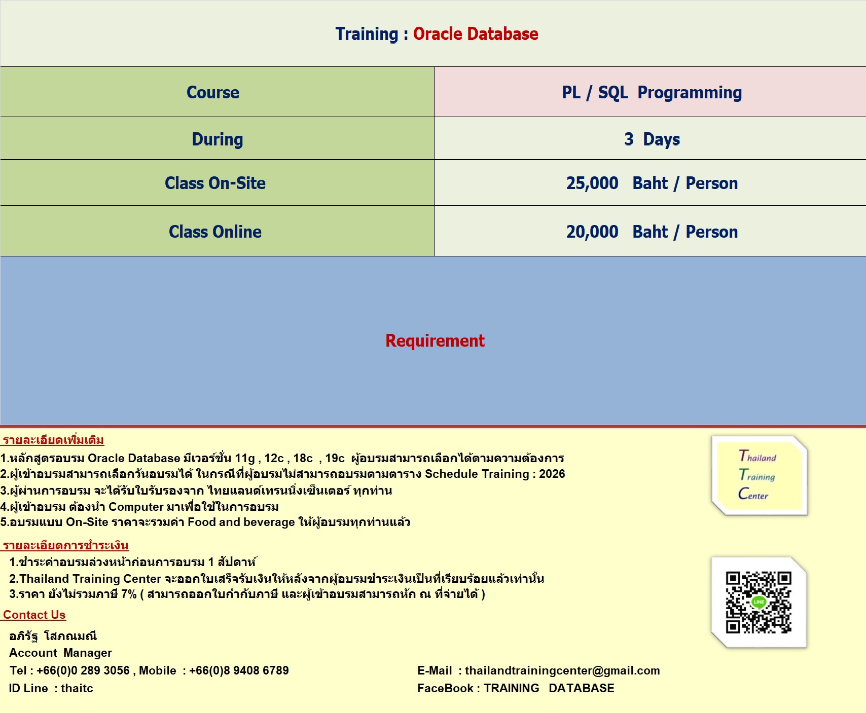 เปิดอบรมหลักสูตร Oracle Database : PL/SQL Programming